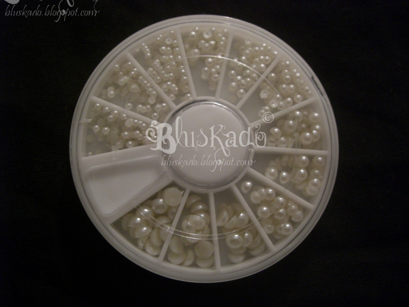 | A wheel of different sized flat back pearls |